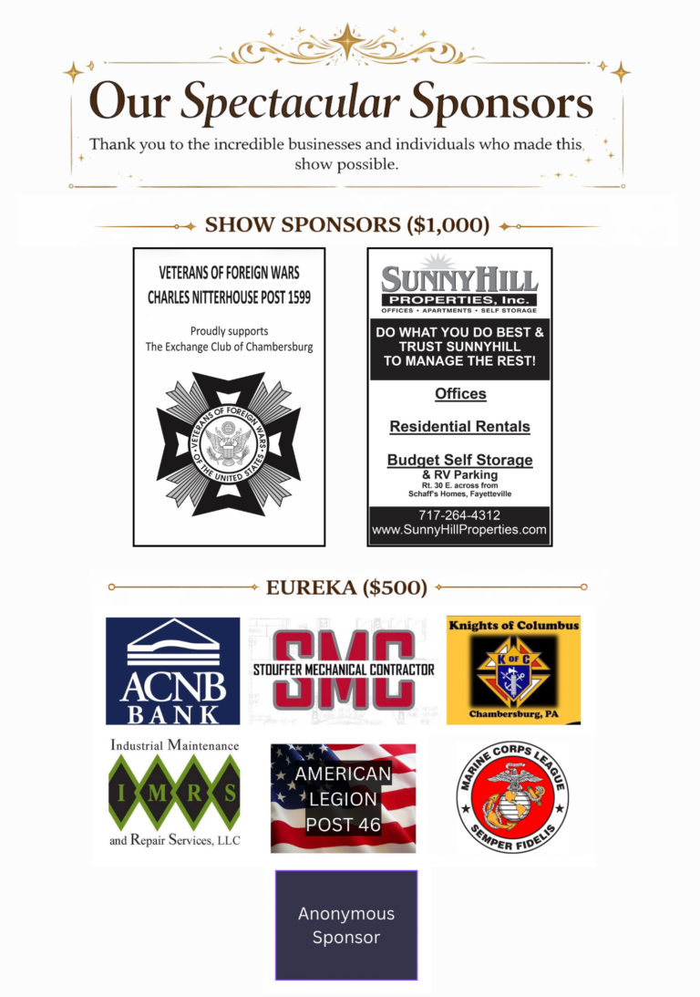 The Exchange Club of Chambersburg is a group of men and women working together to make our communities better places to live through programs of service in Americanism, Community Service, Youth Activities and its national project, the Prevention of Child Abuse.